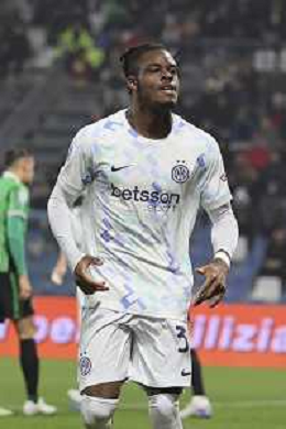 Yann Aurel Bisseck of Inter FC celebrates after scoring during US Sassuolo vs Internazionale FC, 24° Serie A Enilive 2025-26 game at Mapei stadium - Citta del Tricolore in Reggio nell'Emilia (RE), Italy, on February 08, 2026. (Photo by Davide Casentini)-AGENZIA ALDO LIVERANI SAS