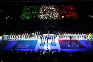 CASALECCHIO DI RENO )BOLOGNA) FINALE COPPA ITALIA SUPERLEGA MASCHILE RANA VERONA-ITAS TRENTINO 3-0 NELLA FOTO L'INNO NAZIONALE ITALIANO PRIMA DELLA PARTITA ©SSANNA-AGENZIA ALDO LIVERANI SAS