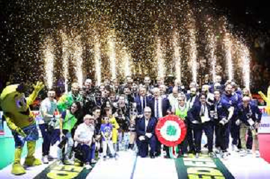 CASALECCHIO DI RENO (BOLOGNA)08 02 2026 FINALE COPPA ITALIA MASCHILE PALLAVOLO FINAL FOUR COPPA ITALIA SUPERLEGA MASCHILE RANA VERON-ITAS TRENTINO 3-0 NELLA FOTO RANA VERONA ESULTA DOPO LA VITTORIA FOTO GIANNI SANNA-AG ALDO LIVERANI SAS