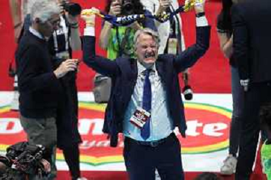 CASALECCHIO DI RENO (BOLOGNA)08 02 2026 FINALE COPPA ITALIA MASCHILE PALLAVOLO FINAL FOUR COPPA ITALIA SUPERLEGA MASCHILE RANA VERON-ITAS TRENTINO 3-0 NELLA FOTO AVV STEFANO FANINI PRESIDENTE RANA VERONA FESTEGGIA DOPO LA PARTITA ©SANNA -AGENZIA ALDO LIVERANI SAS