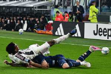 Torino 08.02.2026 Allianz Stadium TVA @Alessandro FalzoneAg. Aldo Liverani sas Juventus vs Lazio Campionato di serie A 2025/2026 Nella foto: KENAN YILDIZ - JEREMIE BOGA A TERRA ©Viganti-AGENZIA ALDO LIVERANI SAS