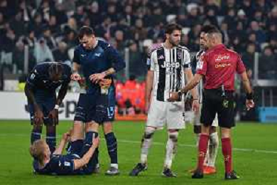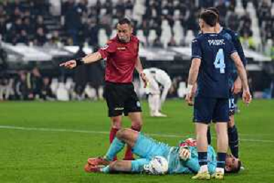 Torino 08.02.2026 Allianz Stadium TVA @Alessandro FalzoneAg. Aldo Liverani sas Juventus vs Lazio Campionato di serie A 2025/2026 Nella foto: ARBITRO MARCO GUIDA E IVAN PROVEDEL A TERRA ©Viganti-AGENZIA ALDO LIVERANI SAS