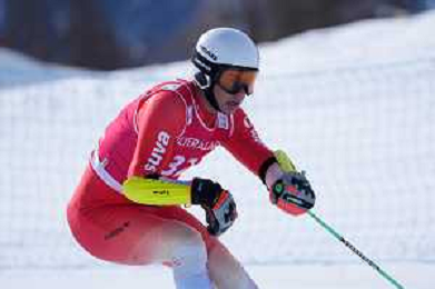 Josh HANLON, AUS, bib number 47, run 2, action photo, Men's Slalom at FIS Para Alpine Skiing World Cup 2025-26 in Veysonnaz, Switzerland, 2026-02-09, Photo Credit: action press / Alexandra Blum AG KARMAPRESS-AG ALDO LIVERANI SAS ONLY ITALY