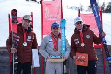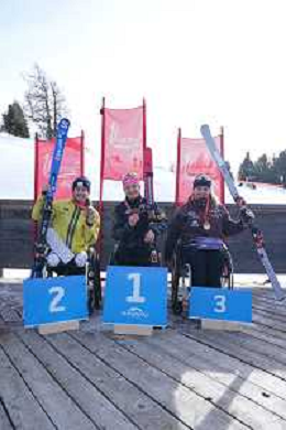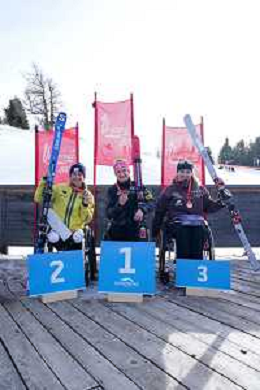 Corey PETERS, NZL, Lou BRAZ-DAGAND, FRA, Jesper PEDERSEN, NOR, Podium photo, Men's Slalom at FIS Para Alpine Skiing World Cup 2025-26 in Veysonnaz, Switzerland, 2026-02-09, Photo Credit: action press / Alexandra Blum AG KARMAPRESS-AG ALDO LIVERANI SAS ONLY ITALY