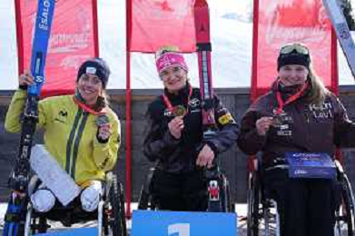 Audrey PASCUAL SECO, ESP, Anna-Lena FORSTER, GER, Nette KIVIRANTA, FIN, podium photo, Women's Slalom at FIS Para Alpine Skiing World Cup 2025-26 in Veysonnaz, Switzerland, 2026-02-09, Photo Credit: action press / Alexandra Blum AG KARMAPRESS-AG ALDO LIVERANI SAS ONLY ITALY