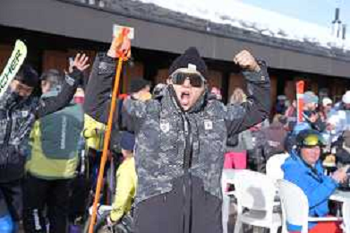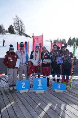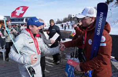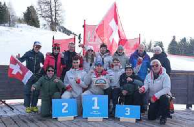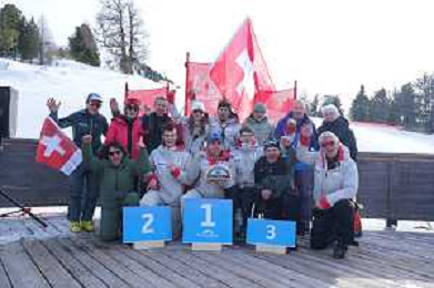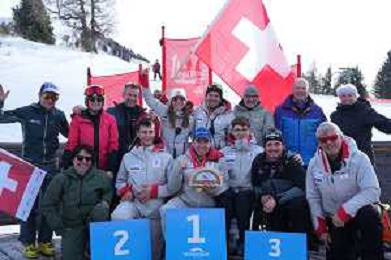 Robin CUCHE, SUI, and team Switzerland, Standing, winner photo, Men's Slalom at FIS Para Alpine Skiing World Cup 2025-26 in Veysonnaz, Switzerland, 2026-02-09, Photo Credit: action press / Alexandra Blum AG KARMAPRESS-AG ALDO LIVERANI SAS ONLY ITALY