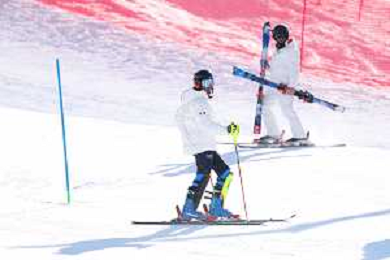 Eduard HALLBERG, FIN, bib Number 16, Inspection, Action, Photo, Timon HAUGAN, NOR, bib Number 21, Men's Team Combined at Alpine Skiing Olympic Winter Games 2025-26 in Milano-Cortina, Italy, 2026-02-09, Photo Credit: action press / Naoki Morita AG KARMAPRESS-AG ALDO LIVERANI SAS ONLY ITALY