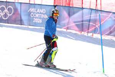 Marek MULLER, CZE, bib Number 2, Inspection, Action Photo, Men's Team Combined at Alpine Skiing Olympic Winter Games 2025-26 in Milano-Cortina, Italy, 2026-02-09, Photo Credit: action press / Naoki Morita AG KARMAPRESS-AG ALDO LIVERANI SAS ONLY ITALY