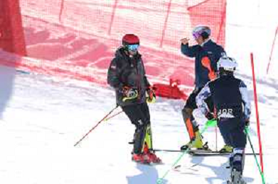 Manuel FELLER, AUT, bib Number 10, Inspection, Action Photo, Eduard HALLBERG, FIN, bib Number 16, Timon HAUGAN, NOR, bib Number 21, Men's Team Combined at Alpine Skiing Olympic Winter Games 2025-26 in Milano-Cortina, Italy, 2026-02-09, Photo Credit: action press / Naoki Morita AG KARMAPRESS-AG ALDO LIVERANI SAS ONLY ITALY