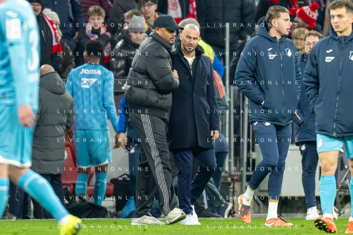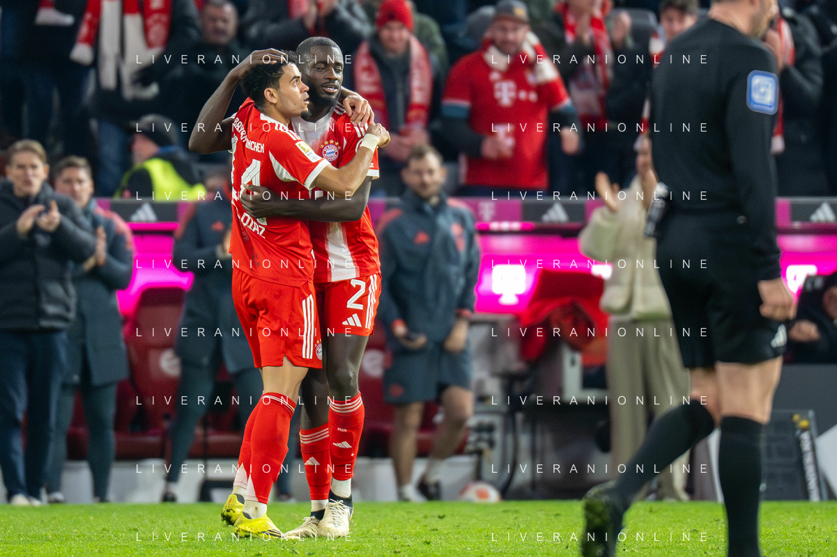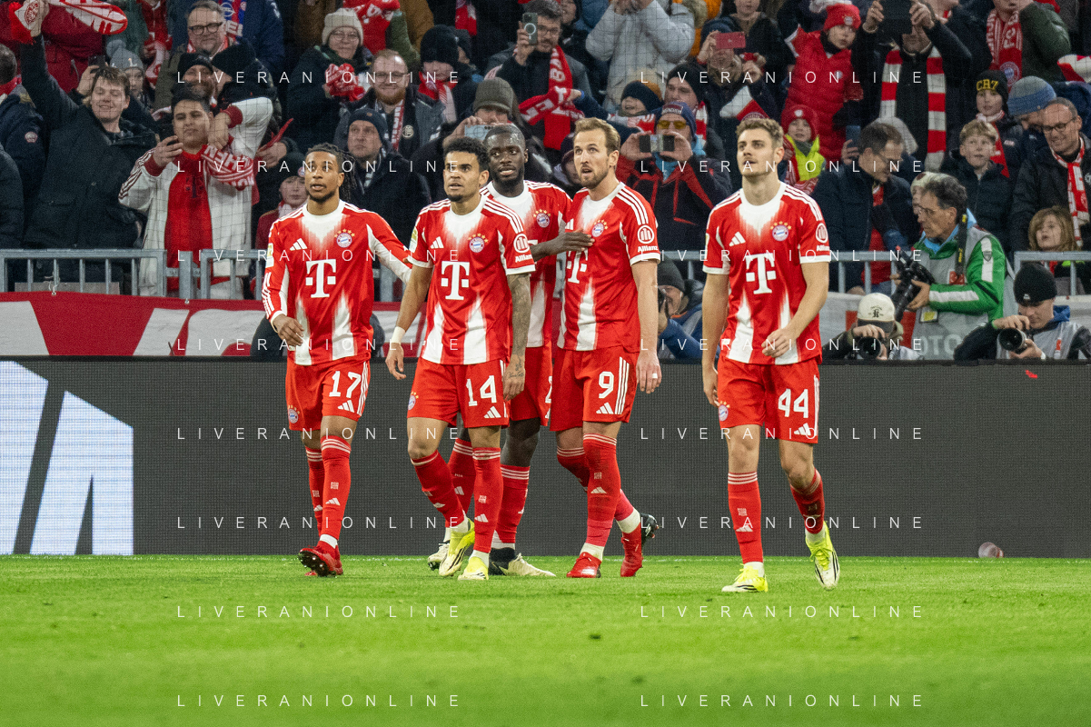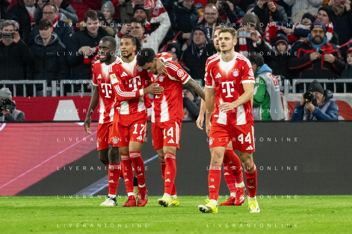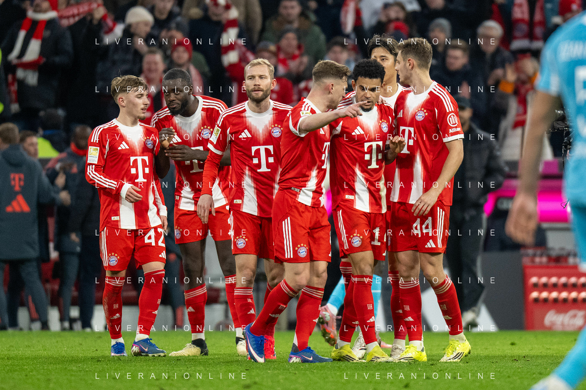 Karl Lennart #42 (FC Bayern Muenchen), Dayot Upamecano #2 (FC Bayern Muenchen), Konrad Laimer #27 (FC Bayern Muenchen), Joshua Kimmich #6 (FC Bayern Muenchen), Luis Diaz #14 (FC Bayern Muenchen), Josip Stanisic #44 (FC Bayern Muenchen) jubel, FC Bayern Muenchen - TSG Hoffenheim, Fussball, Bundesliga, 21. Spieltag, 08.02.2026 DFB regulations prohibit any use of photographs as image sequences and/or quasi-video / action press ©kolbert-Action press-KarmaPress-AGENZIA ALDO LIVERANI SAS ITALY ONLY EDITORIAL USE ONLY