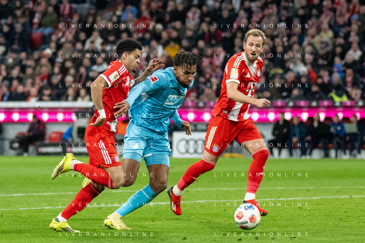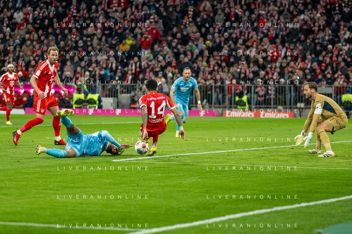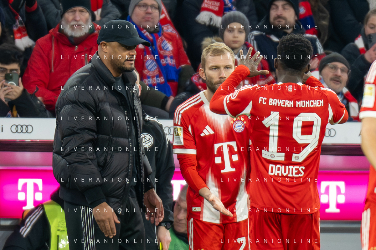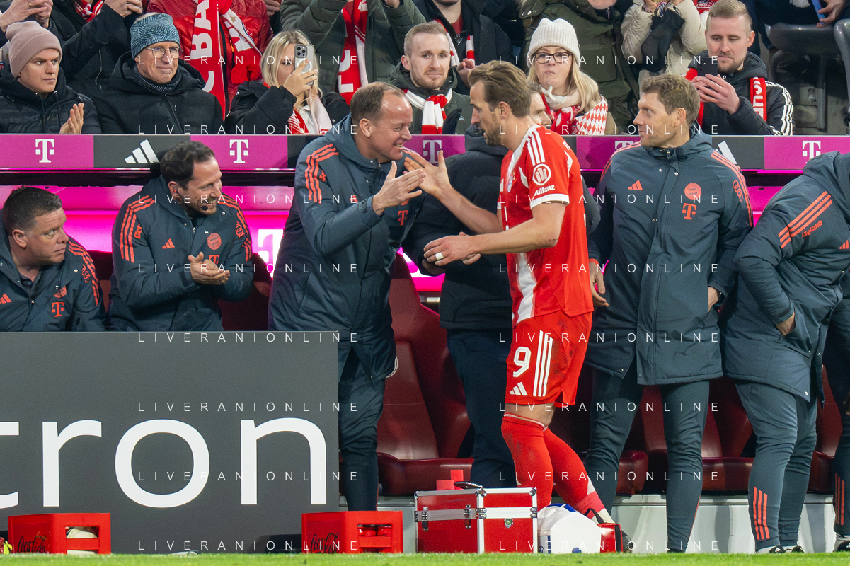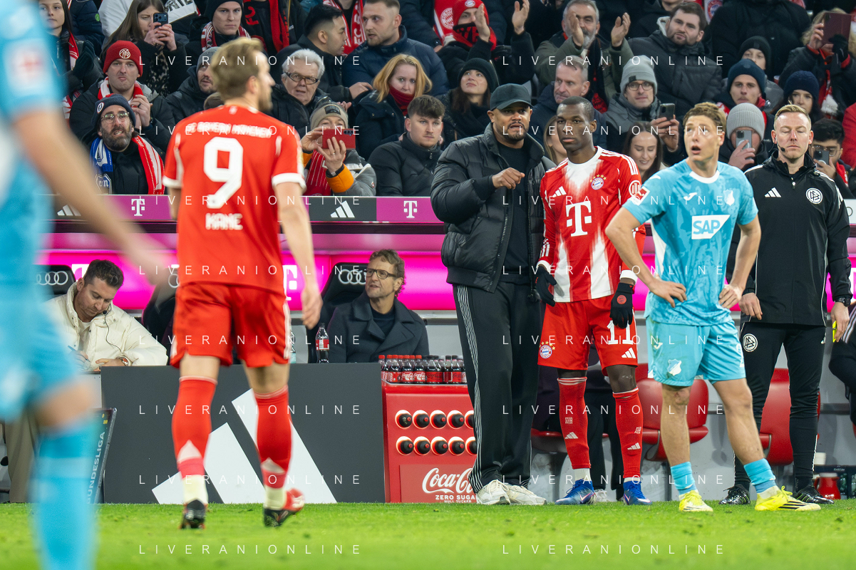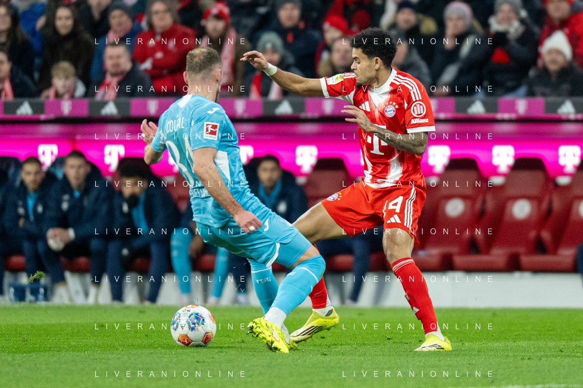 Karl Lennart #42 (FC Bayern Muenchen), Dayot Upamecano #2 (FC Bayern Muenchen), Konrad Laimer #27 (FC Bayern Muenchen), Joshua Kimmich #6 (FC Bayern Muenchen), Luis Diaz #14 (FC Bayern Muenchen), Josip Stanisic #44 (FC Bayern Muenchen) jubel, FC Bayern Muenchen - TSG Hoffenheim, Fussball, Bundesliga, 21. Spieltag, 08.02.2026 DFB regulations prohibit any use of photographs as image sequences and/or quasi-video / action press ©kolbert-Action press-KarmaPress-AGENZIA ALDO LIVERANI SAS ITALY ONLY EDITORIAL USE ONLY