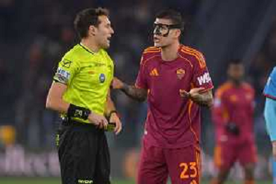 Roma vs Cagliari Campionato Serie A Enilive - 24 Giornata Stadio Olimpico - Roma 09-02-2026 nella foto Mancini protesta con arbitro Marcenaro Foto Federico Gaetano - ag Aldo liverani-AGENZIA ALDO LIVERANI SAS