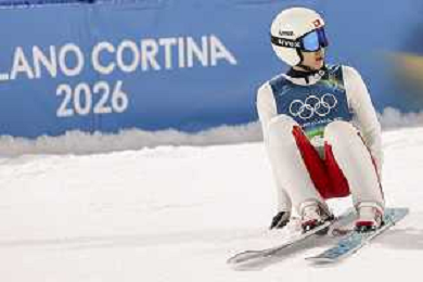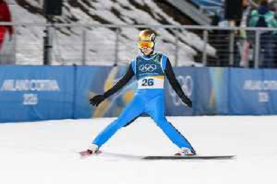 Antti AALTO, FIN, bib number 26, Action Photo, Men's Normal Hill HS107 at Ski Jumping Olympic Winter Games 2025-26 in Milano Cortina, Italy, 2026-02-09, Photo Credit: action press / Julia Piatkowska/KarmaPress / AGENZIA ALDO LIVERANI SAS ITALY ONLY EDITORIAL USE ONLY