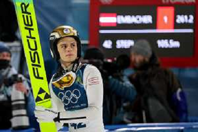 Stephan EMBACHER, AUT, bib number 42, Action Photo, Men's Normal Hill HS107 at Ski Jumping Olympic Winter Games 2025-26 in Milano Cortina, Italy, 2026-02-09, Photo Credit: action press / Julia Piatkowska/KarmaPress / AGENZIA ALDO LIVERANI SAS ITALY ONLY EDITORIAL USE ONLY