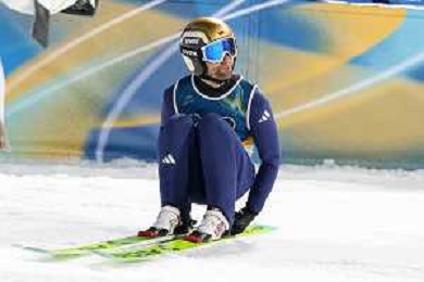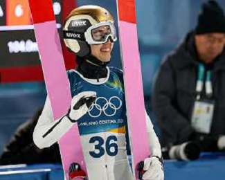 Pius PASCHKE, GER, bib number 32, Action Photo, Men's Normal Hill HS107 at Ski Jumping Olympic Winter Games 2025-26 in Milano Cortina, Italy, 2026-02-09, Photo Credit: action press / Julia Piatkowska/KarmaPress / AGENZIA ALDO LIVERANI SAS ITALY ONLY EDITORIAL USE ONLY