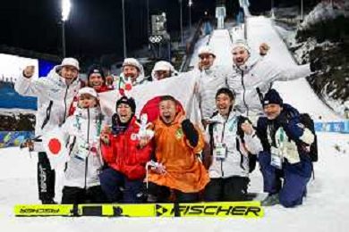 Team Japan, Ren NIKAIDO, JPN, bib number 48, Winner Photo, Men's Normal Hill HS107 at Ski Jumping Olympic Winter Games 2025-26 in Milano Cortina, Italy, 2026-02-09, Photo Credit: action press / Julia Piatkowska/KarmaPress / AGENZIA ALDO LIVERANI SAS ITALY ONLY EDITORIAL USE ONLY