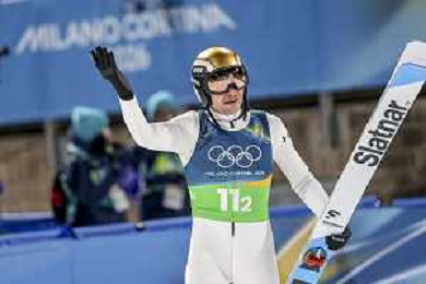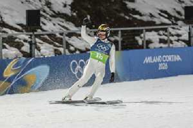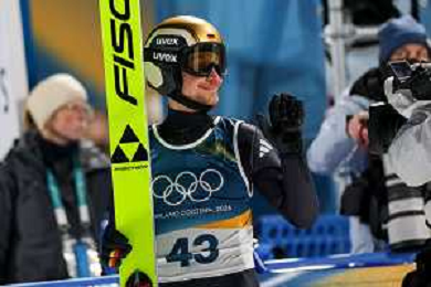 Team Switzerland, Gregor DESCHWANDEN, SUI, bib number 31, Winner Photo , Men's Normal Hill HS107 at Ski Jumping Olympic Winter Games 2025-26 in Milano Cortina, Italy, 2026-02-09, Photo Credit: action press / Julia Piatkowska/KarmaPress / AGENZIA ALDO LIVERANI SAS ITALY ONLY EDITORIAL USE ONLY