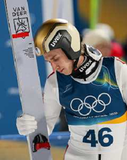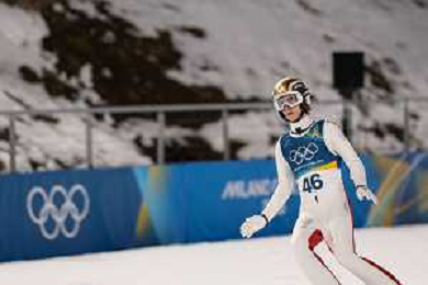 Jan HOERL, AUT, bib number 44, Action Photo, Men's Normal Hill HS107 at Ski Jumping Olympic Winter Games 2025-26 in Milano Cortina, Italy, 2026-02-09, Photo Credit: action press / Julia Piatkowska/KarmaPress / AGENZIA ALDO LIVERANI SAS ITALY ONLY EDITORIAL USE ONLY