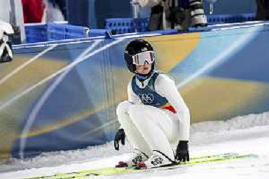 Ping ZENG, CHN, bib nu 4-1, Action Photo, Mixed Team Normal Hill HS107 at Ski Jumping Olympic Winter Games 2025-26 in Milano Cortina, Italy, 2026-02-10, Photo Credit: action press / Julia Piatkowska AG KARMAPRESS-AG ALDO LIVERANI SAS