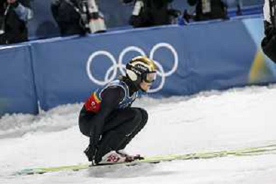 Andreas WELLINGER, GER, bib number 27, Action Photo, Men's Normal Hill HS107 at Ski Jumping Olympic Winter Games 2025-26 in Milano Cortina, Italy, 2026-02-09, Photo Credit: action press / Julia Piatkowska/KarmaPress / AGENZIA ALDO LIVERANI SAS ITALY ONLY EDITORIAL USE ONLY
