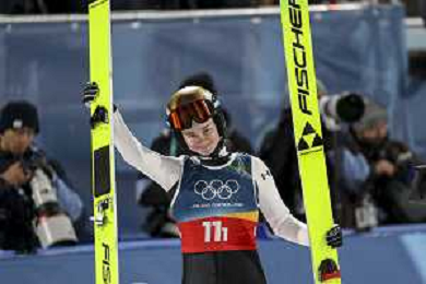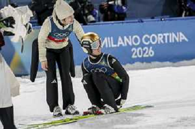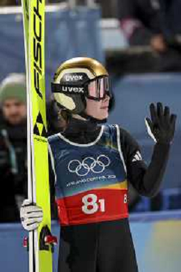 Agnes REISCH, GER, bib nu 9-1, Action Photo, Mixed Team Normal Hill HS107 at Ski Jumping Olympic Winter Games 2025-26 in Milano Cortina, Italy, 2026-02-10, Photo Credit: action press / Julia Piatkowska AG KARMAPRESS-AG ALDO LIVERANI SAS