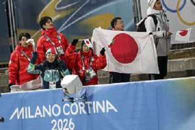 Crowd, JPN, Event Photo, Mixed Team Normal Hill HS107 at Ski Jumping Olympic Winter Games 2025-26 in Milano Cortina, Italy, 2026-02-10, Photo Credit: action press / Julia Piatkowska AG KARMAPRESS-AG ALDO LIVERANI SAS