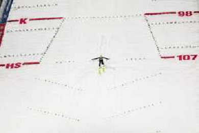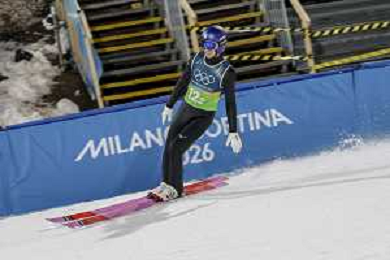Domen PREVC, SLO, bib number 50, Action Photo, Men's Normal Hill HS107 at Ski Jumping Olympic Winter Games 2025-26 in Milano Cortina, Italy, 2026-02-09, Photo Credit: action press / Julia Piatkowska/KarmaPress / AGENZIA ALDO LIVERANI SAS ITALY ONLY EDITORIAL USE ONLY
