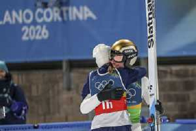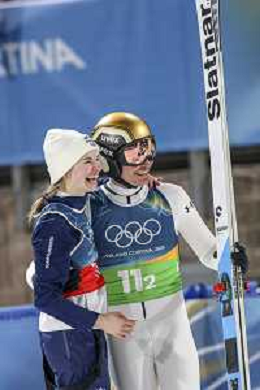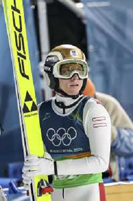 Annika BELSHAW, USA, bib nu 5-1, Action Photo, Mixed Team Normal Hill HS107 at Ski Jumping Olympic Winter Games 2025-26 in Milano Cortina, Italy, 2026-02-10, Photo Credit: action press / Julia Piatkowska AG KARMAPRESS-AG ALDO LIVERANI SAS