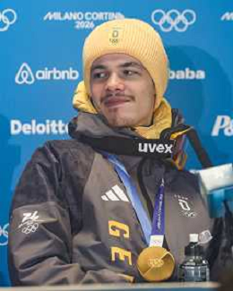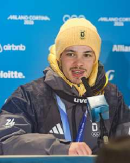 Philipp RAIMUND, GER, bib number 45, Press Conference, Event Photo, Men's Normal Hill HS107 at Ski Jumping Olympic Winter Games 2025-26 in Milano Cortina, Italy, 2026-02-09, Photo Credit: action press / Julia Piatkowska/KarmaPress / AGENZIA ALDO LIVERANI SAS ITALY ONLY EDITORIAL USE ONLY