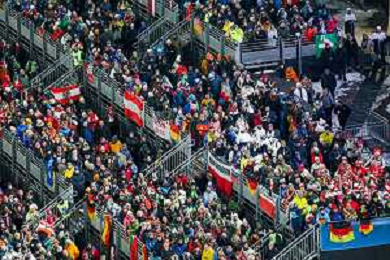 German fans, Event Photo, Men's Normal Hill HS107 at Ski Jumping Olympic Winter Games 2025-26 in Milano Cortina, Italy, 2026-02-09, Photo Credit: action press / Julia Piatkowska/KarmaPress / AGENZIA ALDO LIVERANI SAS ITALY ONLY EDITORIAL USE ONLY