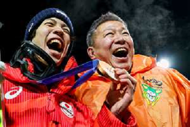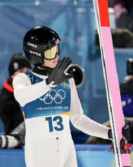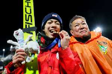 Ren NIKAIDO, JPN, bib number 48, Winner Photo, Men's Normal Hill HS107 at Ski Jumping Olympic Winter Games 2025-26 in Milano Cortina, Italy, 2026-02-09, Photo Credit: action press / Julia Piatkowska/KarmaPress / AGENZIA ALDO LIVERANI SAS ITALY ONLY EDITORIAL USE ONLY