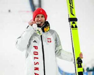 Team Poland, Kacper TOMASIAK, POL, bib number 38, Winner Photo, Men's Normal Hill HS107 at Ski Jumping Olympic Winter Games 2025-26 in Milano Cortina, Italy, 2026-02-09, Photo Credit: action press / Julia Piatkowska/KarmaPress / AGENZIA ALDO LIVERANI SAS ITALY ONLY EDITORIAL USE ONLY