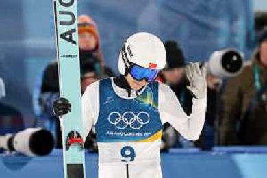 Qiwu SONG, CHN, bib number 9, Action Photo, Men's Normal Hill HS107 at Ski Jumping Olympic Winter Games 2025-26 in Milano Cortina, Italy, 2026-02-09, Photo Credit: action press / Julia Piatkowska/KarmaPress / AGENZIA ALDO LIVERANI SAS ITALY ONLY EDITORIAL USE ONLY