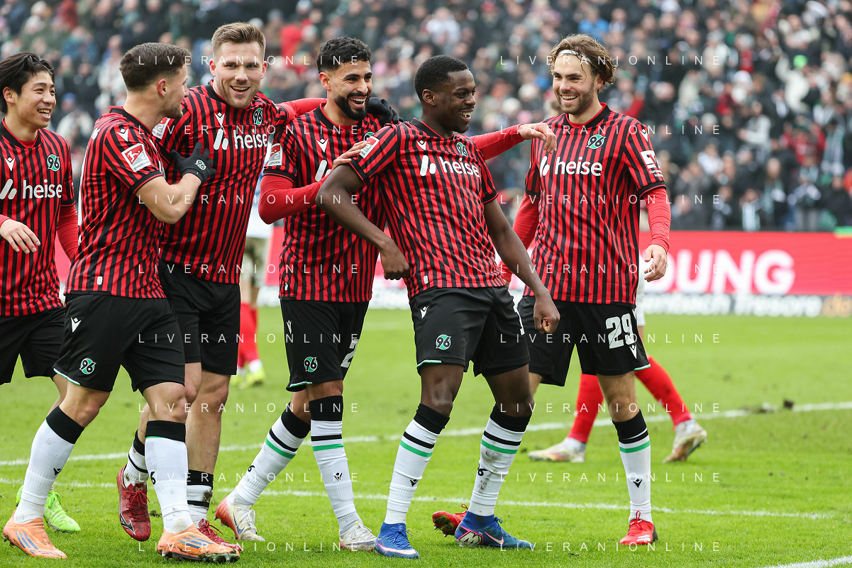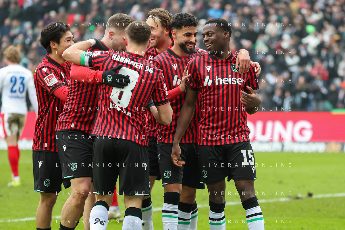 2. Bundesliga - Hannover 96 - Holstein Kiel am 08.02.2026 in der Heinz von Heiden Arena in Hannover Jubel, Torjubel, Torschuetze, Torschütze Noel Aseko Nkili (Hannover) jubelt nach seinem Tor zum 2 zu 0 mit der Mannschaft Foto: osnapix / Marcus Hirnschal DFL regulations prohibit any use of photographs as image sequences and/or quasi-video / action press/ KarmaPress-AGENZIA ALDO LIVERANI SAS ITALY ONLY EDITORIAL USE ONLY