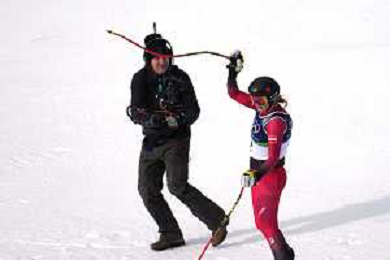 Valerie GRENIER, CAN, Bib 21, Inspection, Action Photo, Women's Team Combined at Alpine Skiing Olympic Winter Games 2025-26 in Milano-Cortina, Italy, 2026-02-10, Photo Credit: action press / Zsombor Czoma/KarmaPress / AGENZIA ALDO LIVERANI SAS ITALY ONLY EDITORIAL USE ONLY