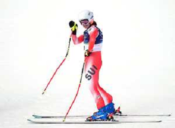 Janine SCHMITT, SUI, Bib Number 4, Run 1, Action Photo, Women's Team Combined at Alpine Skiing Olympic Winter Games 2025-26 in Milano-Cortina, Italy, 2026-02-10, Photo Credit: action press / Zsombor Czoma/KarmaPress / AGENZIA ALDO LIVERANI SAS ITALY ONLY EDITORIAL USE ONLY