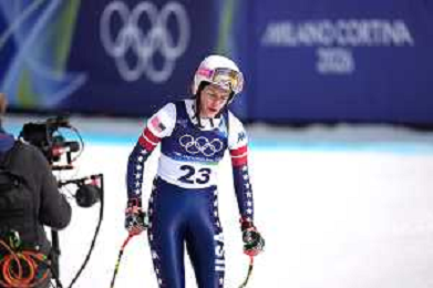 Keely CASHMAN, USA, Bib Number 23, Run 1, Action Photo, Women's Team Combined at Alpine Skiing Olympic Winter Games 2025-26 in Milano-Cortina, Italy, 2026-02-10, Photo Credit: action press / Zsombor Czoma AG KARMAPRESS-AG ALDO LIVERANI SAS