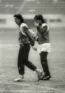 NEG-1990 MILANO STADIO SAN SIRO ALLENAMENTO NAZIONALE ITALIANA DI CALCIO NELLA FOTO NICOLA BERTI E ALESSANDRO COSTACURTA AG ALDO LIVERANI SAS