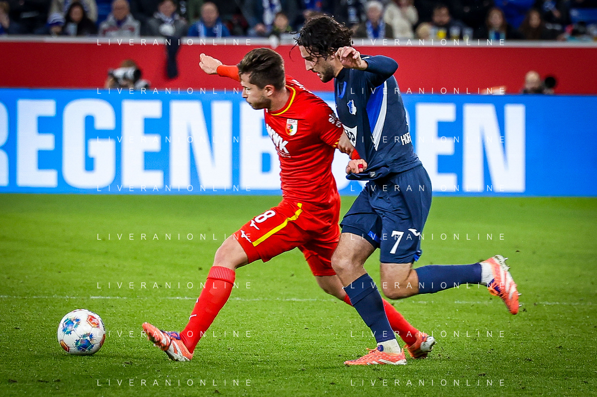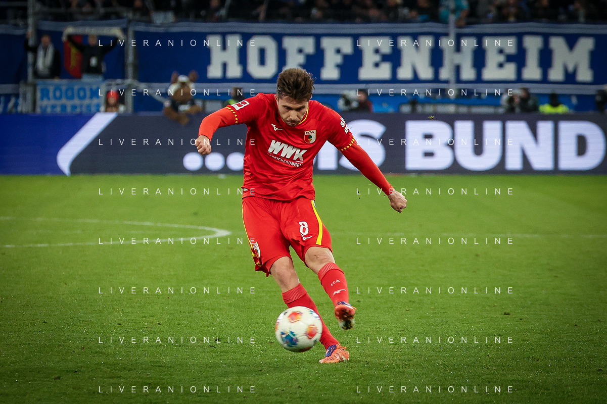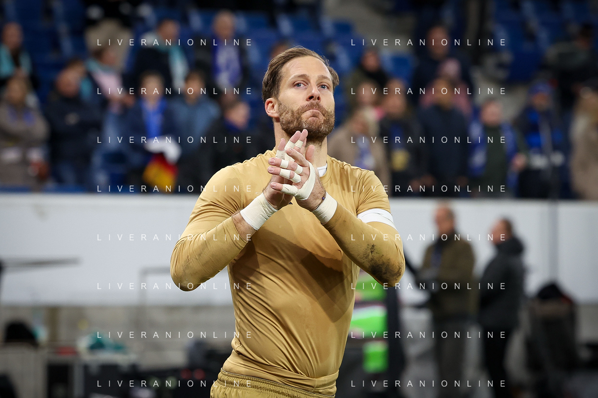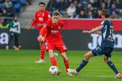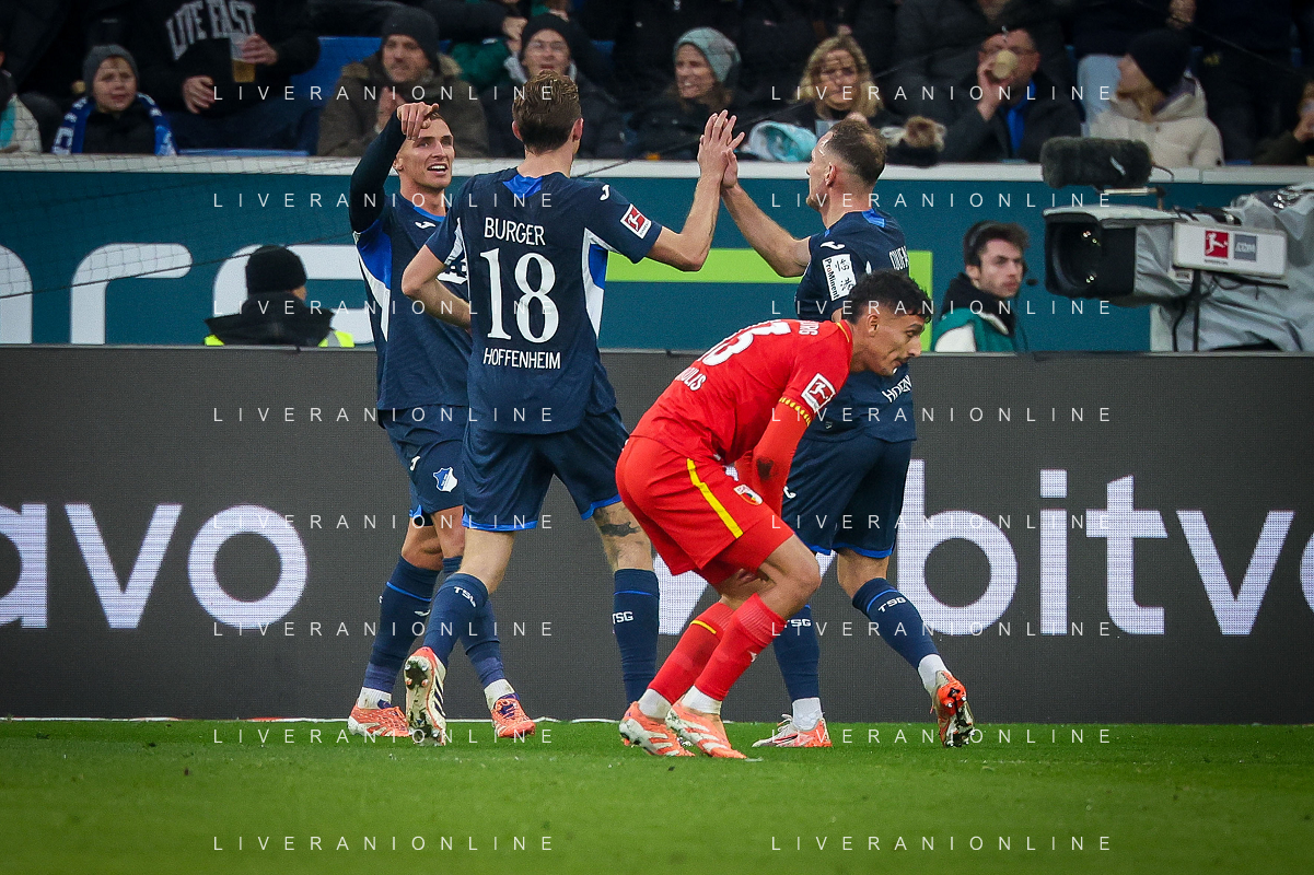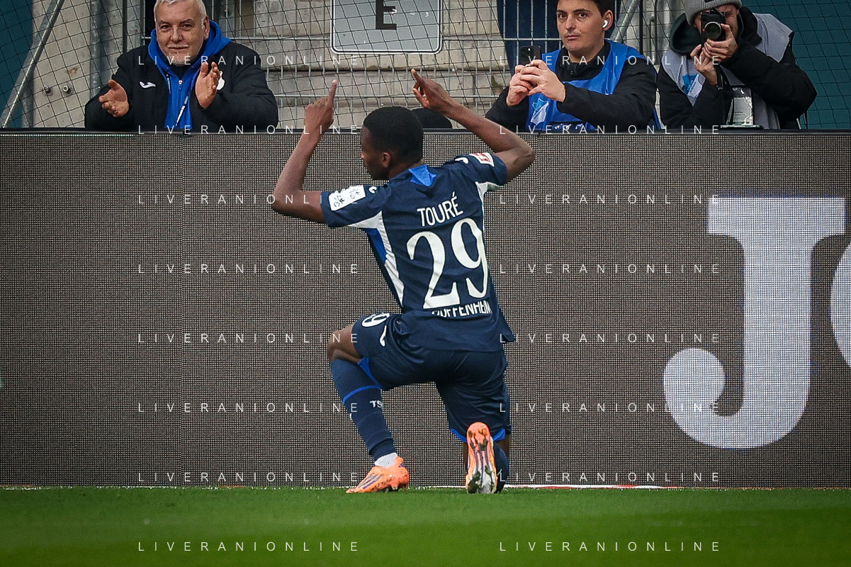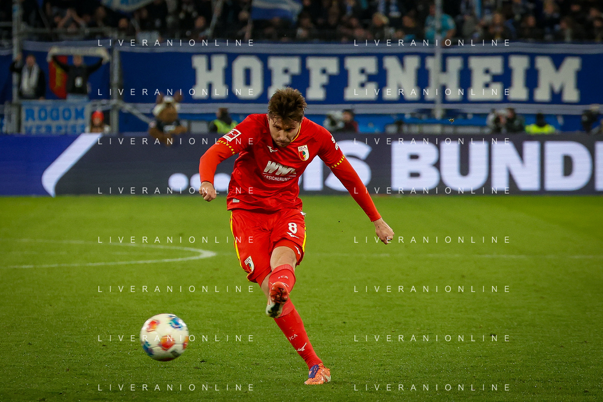 Han-Noah Massengo #4 FC Augsburg), Cedric Zesiger #16 (FC Augsburg), Anton Kade #30 (FC Augsburg), Fabian Rieder #32 (FC Augsburg), Dimitris Giannoulis #13 (FC Augsburg) gruessen die Fans vor Spielbeginn, TSG Hoffenheim vs. FC Augsburg, Fussball, Bundesliga, DFL, Saison 2025/2026, Hinrunde, 12. Spieltag, 29.11.2025 DFB regulations prohibit any use of photographs as image sequences and/or quasi-video / action press AG KARMAPRESS-AG ALDO LIVERANI SAS / AGENZIA ALDO LIVERANI SAS ITALY ONLY EDITORIAL USE ONLY