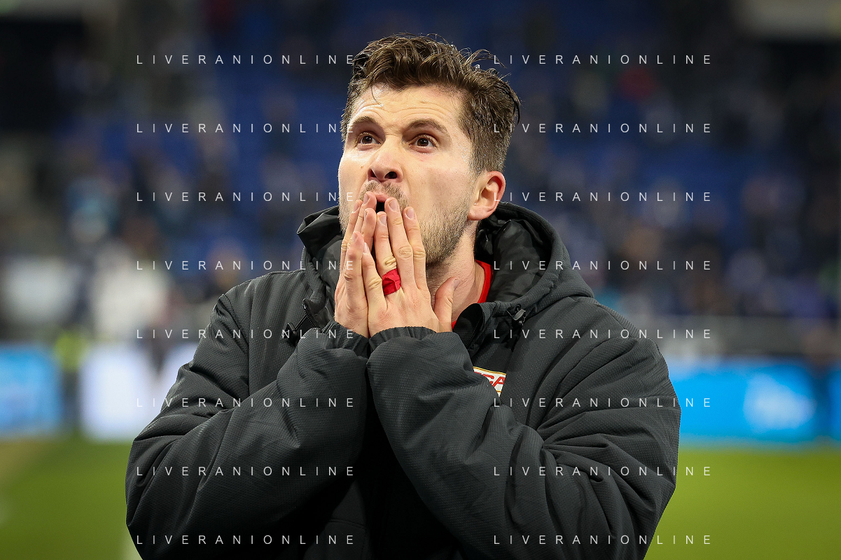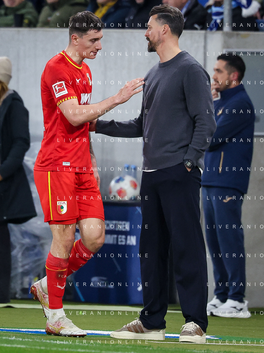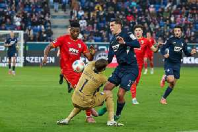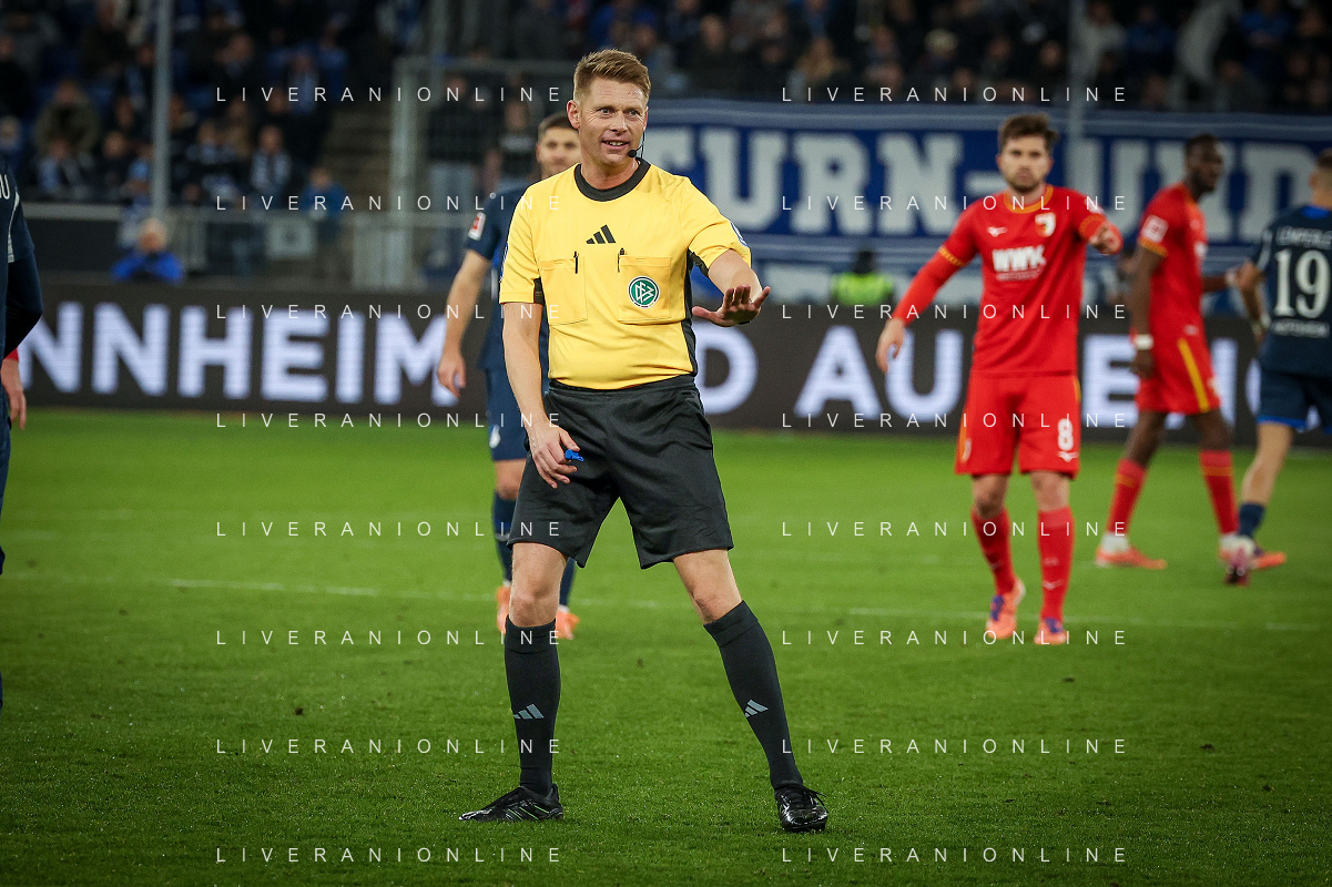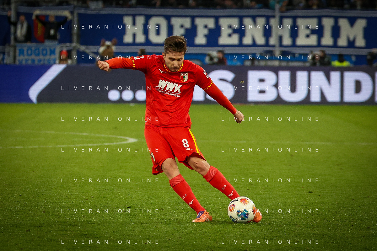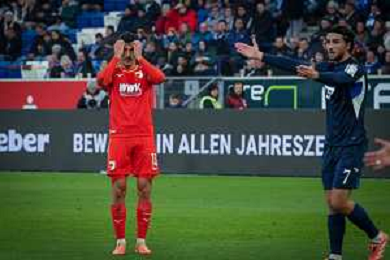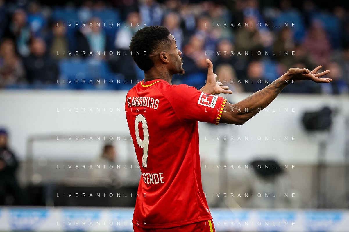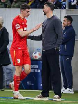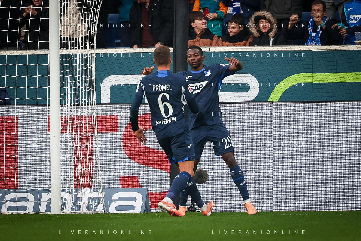 Han-Noah Massengo #4 FC Augsburg), Cedric Zesiger #16 (FC Augsburg), Anton Kade #30 (FC Augsburg), Fabian Rieder #32 (FC Augsburg), Dimitris Giannoulis #13 (FC Augsburg) gruessen die Fans vor Spielbeginn, TSG Hoffenheim vs. FC Augsburg, Fussball, Bundesliga, DFL, Saison 2025/2026, Hinrunde, 12. Spieltag, 29.11.2025 DFB regulations prohibit any use of photographs as image sequences and/or quasi-video / action press AG KARMAPRESS-AG ALDO LIVERANI SAS / AGENZIA ALDO LIVERANI SAS ITALY ONLY EDITORIAL USE ONLY