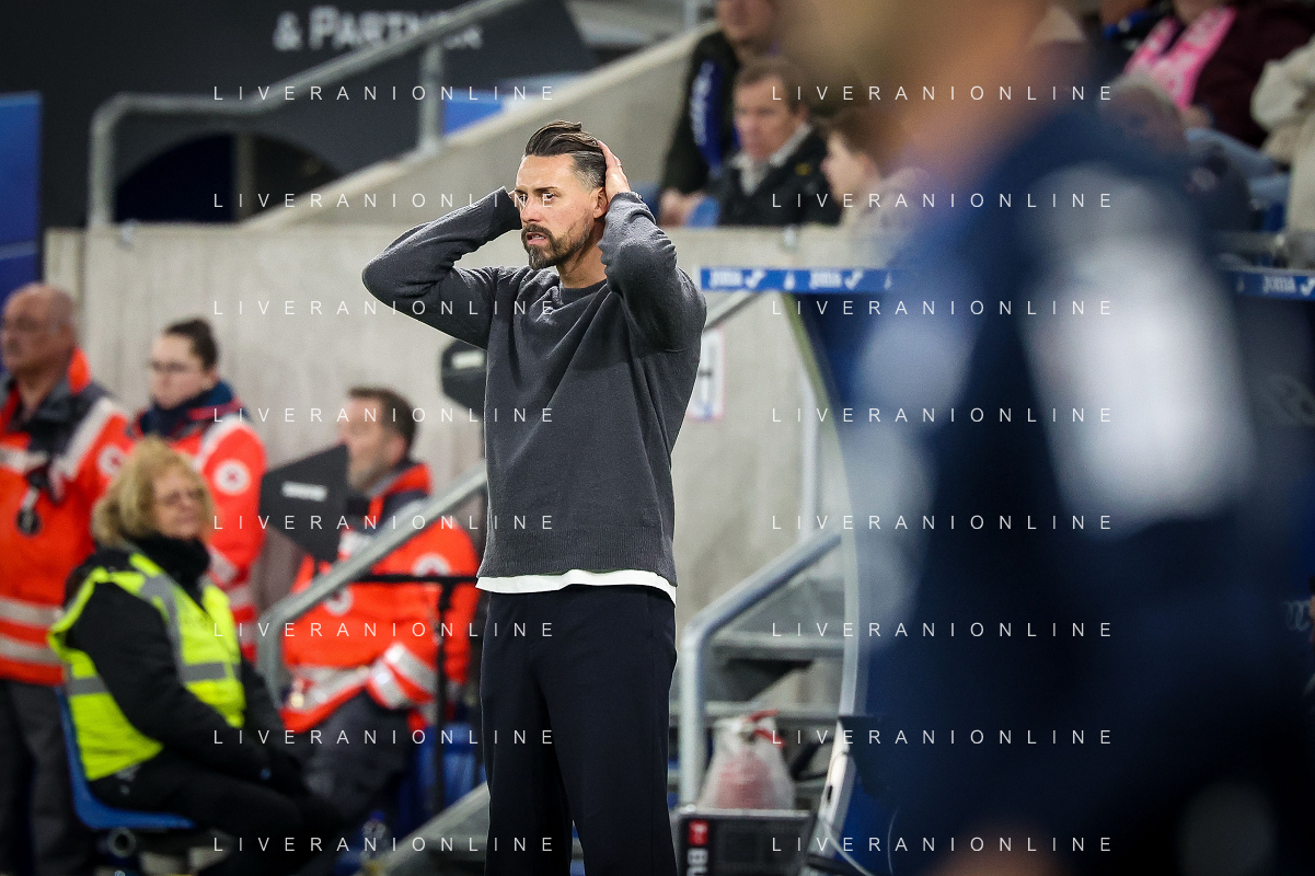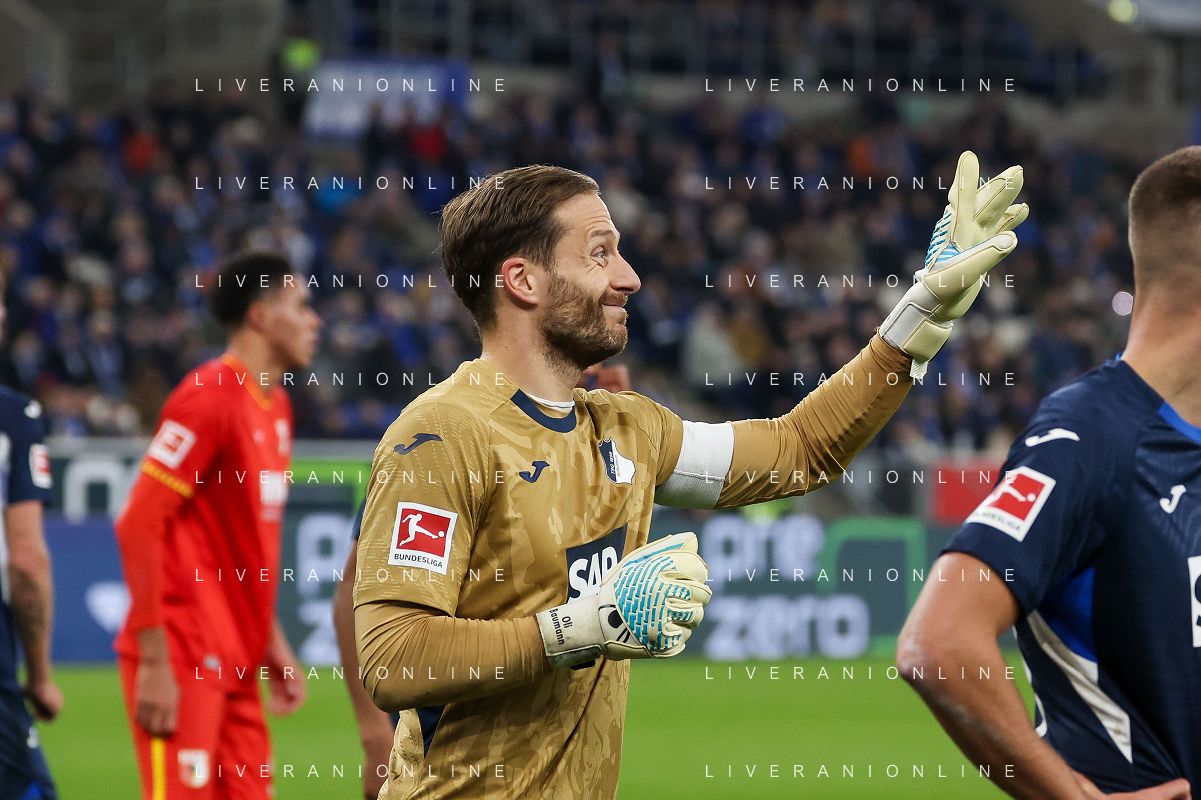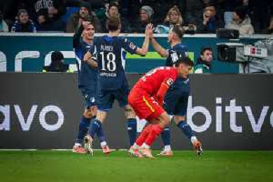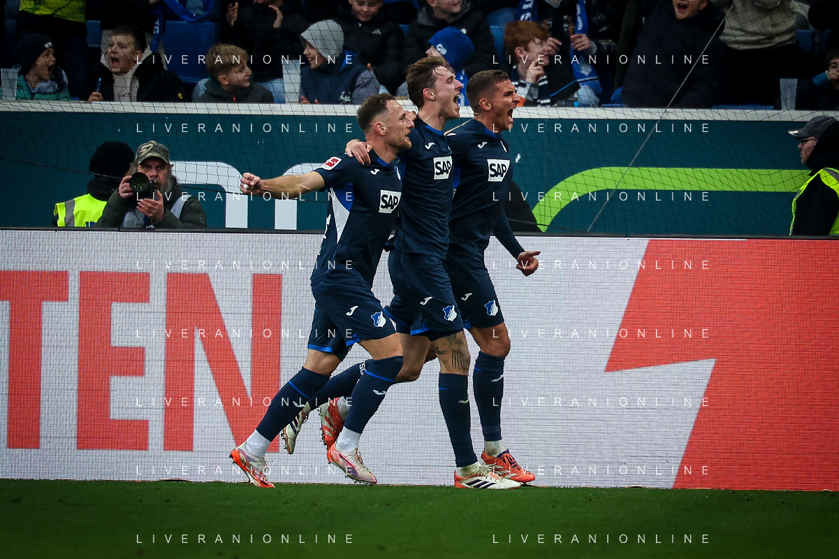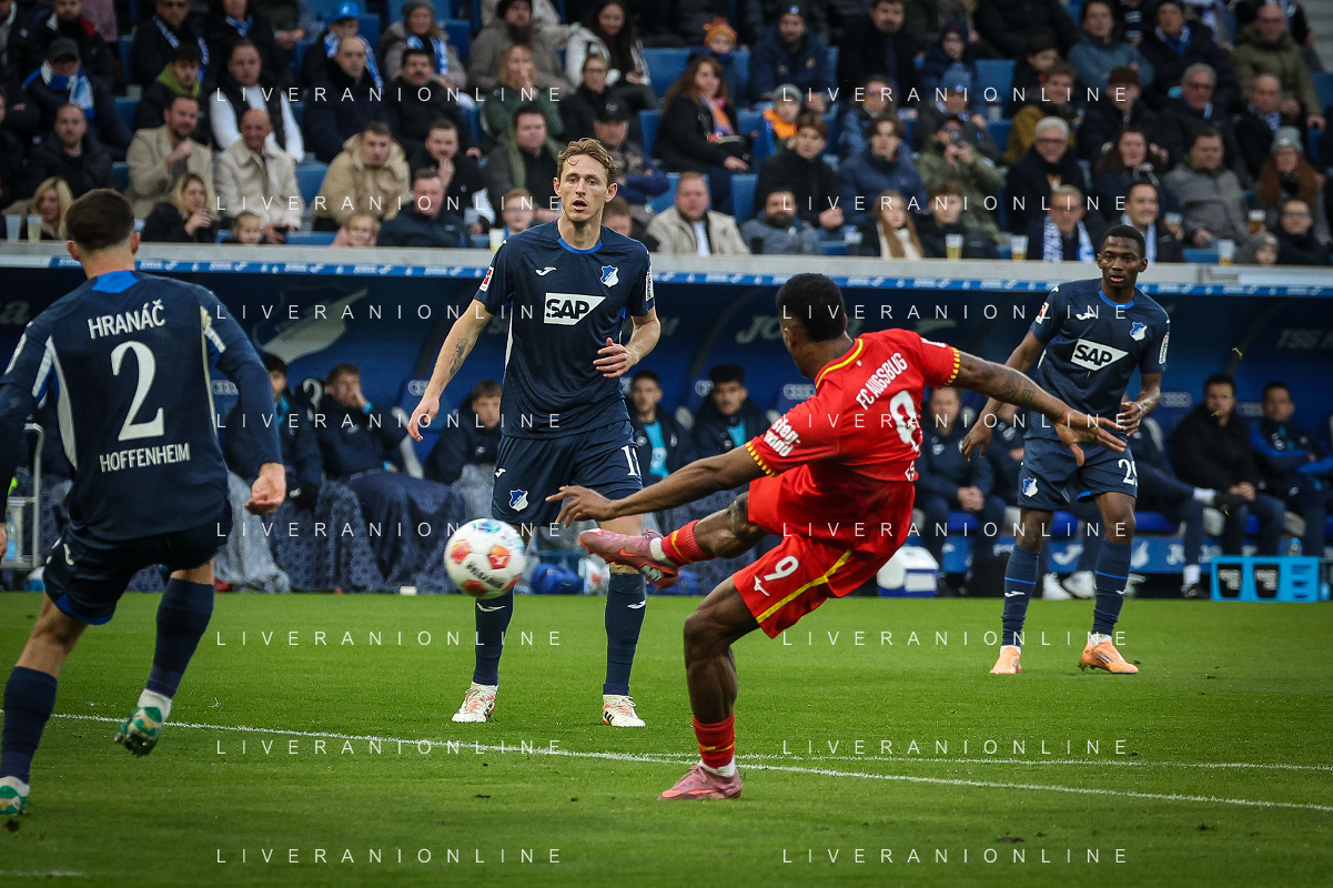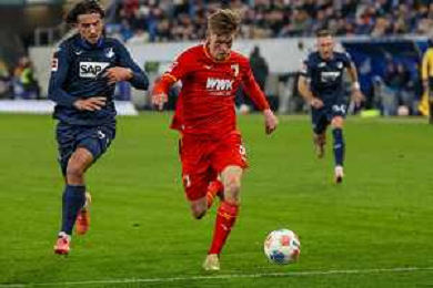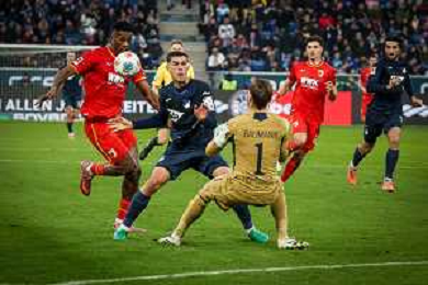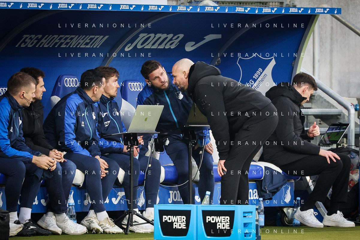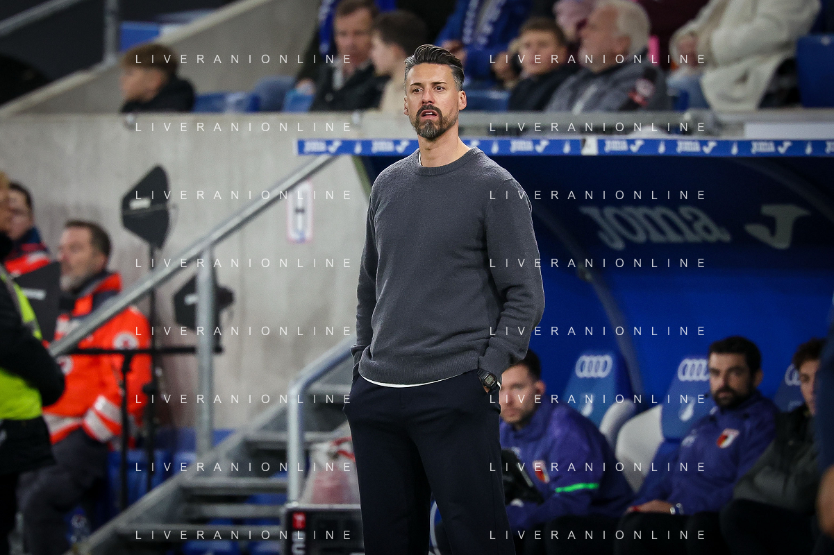 Han-Noah Massengo #4 FC Augsburg), Cedric Zesiger #16 (FC Augsburg), Anton Kade #30 (FC Augsburg), Fabian Rieder #32 (FC Augsburg), Dimitris Giannoulis #13 (FC Augsburg) gruessen die Fans vor Spielbeginn, TSG Hoffenheim vs. FC Augsburg, Fussball, Bundesliga, DFL, Saison 2025/2026, Hinrunde, 12. Spieltag, 29.11.2025 DFB regulations prohibit any use of photographs as image sequences and/or quasi-video / action press AG KARMAPRESS-AG ALDO LIVERANI SAS / AGENZIA ALDO LIVERANI SAS ITALY ONLY EDITORIAL USE ONLY