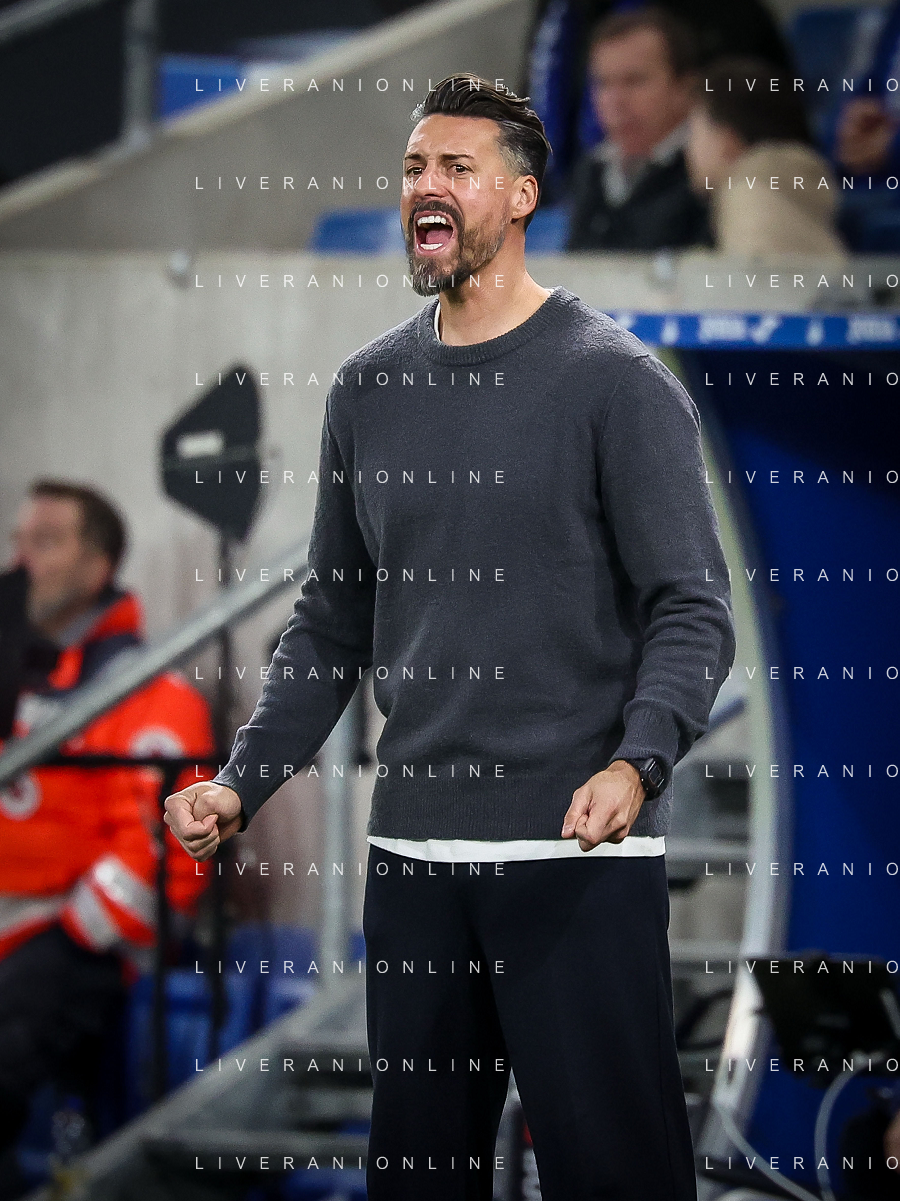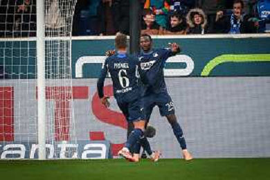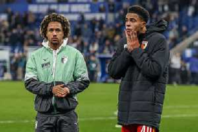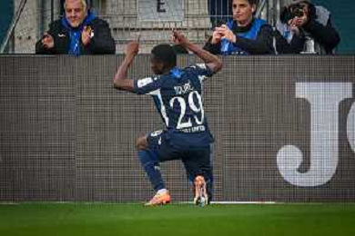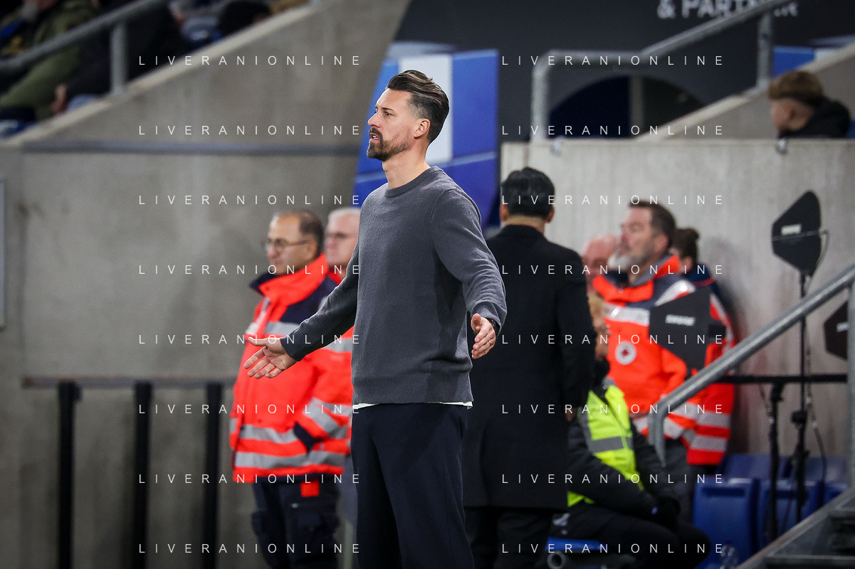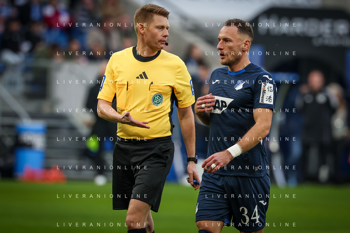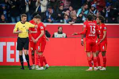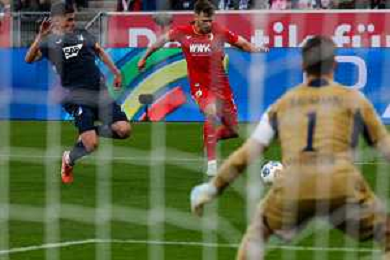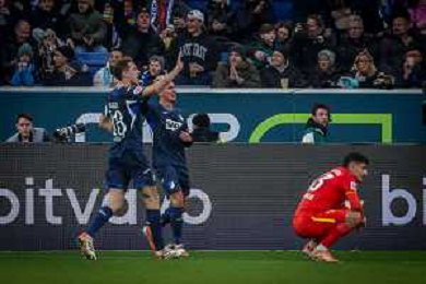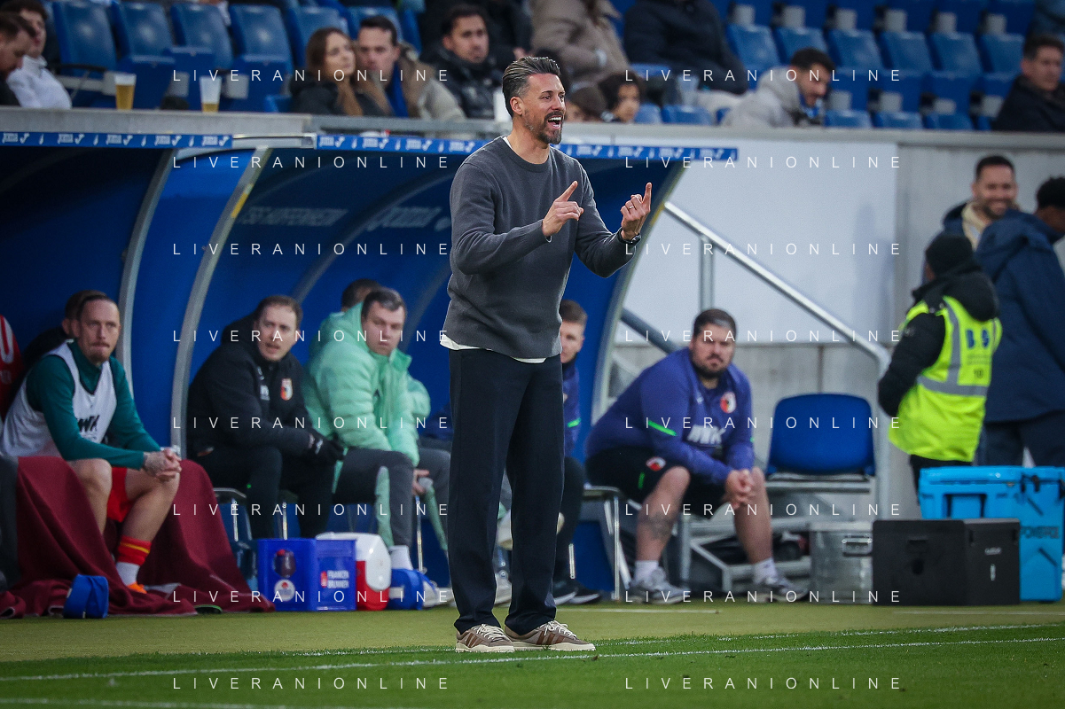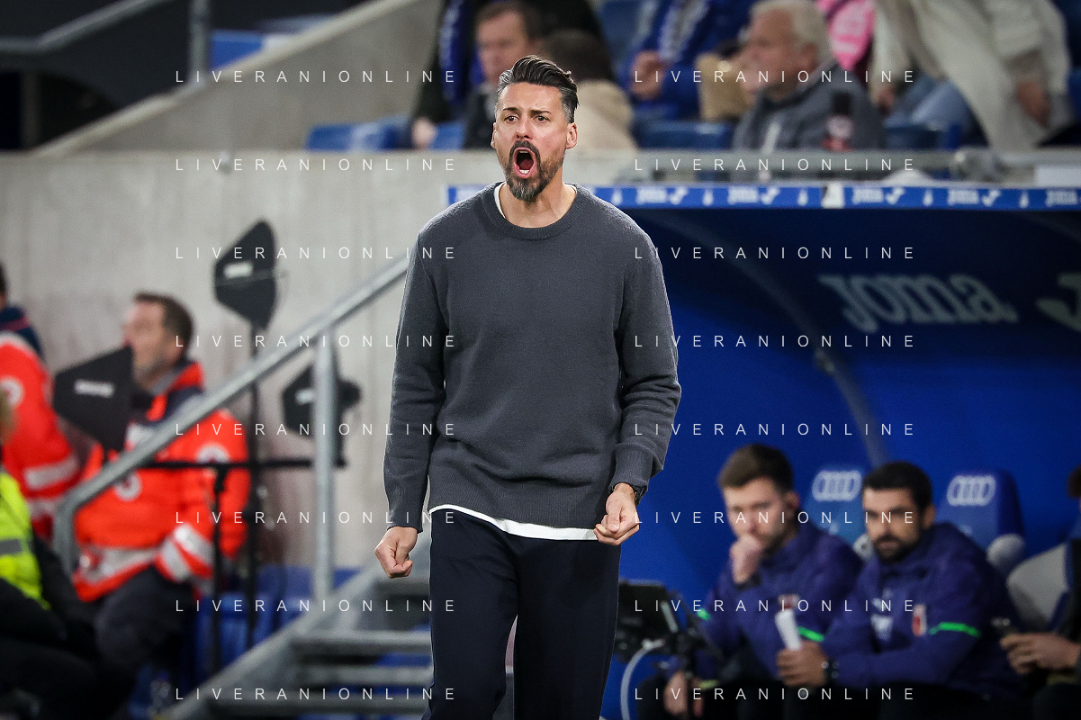 Han-Noah Massengo #4 FC Augsburg), Cedric Zesiger #16 (FC Augsburg), Anton Kade #30 (FC Augsburg), Fabian Rieder #32 (FC Augsburg), Dimitris Giannoulis #13 (FC Augsburg) gruessen die Fans vor Spielbeginn, TSG Hoffenheim vs. FC Augsburg, Fussball, Bundesliga, DFL, Saison 2025/2026, Hinrunde, 12. Spieltag, 29.11.2025 DFB regulations prohibit any use of photographs as image sequences and/or quasi-video / action press AG KARMAPRESS-AG ALDO LIVERANI SAS / AGENZIA ALDO LIVERANI SAS ITALY ONLY EDITORIAL USE ONLY