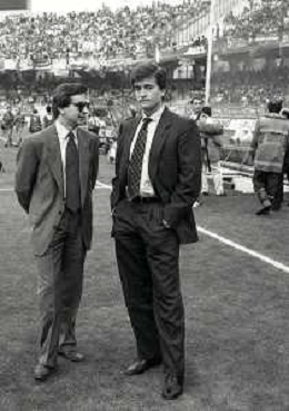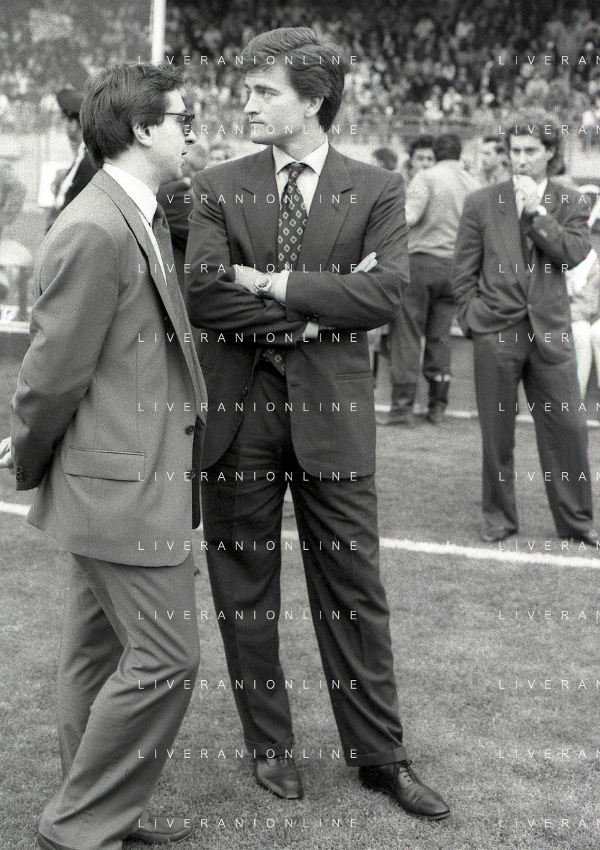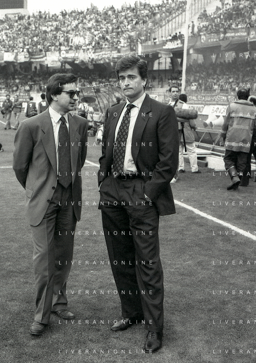 NEG-RETROSPETTIVA GIAMPAOLO BONIPERTI DIRIGENTE JUVENTUS CALCIO NELLA FOTO GIAMPAOLO BONIPERTI DIRIGENTE JUVENTUS CALCIO NELL'ANNO 1991 CON LUIGI MAIFREDI AG ALDO LIVERANI SAS