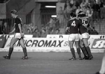 NEG-22-10-1986 TORINO- SEDICESIMI DI FINALE DI ANDATA DI COPPA UEFA TORINO-RABA ETO-4-0 NELLA FOTO WIM KIEFT AG ALDO LIVERANI SAS