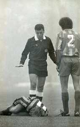 NEG-05-01-1992 CREMONA GARA SOSPESA PER NEBBIA AL 64 CREMONESE-INTER 0-0 NELLA FOTO L'ARBITRO ANGELO AMENDOLIA SOPENDE L'INCONTRO PER NEBBIA AG ALDO LIVERANI SAS