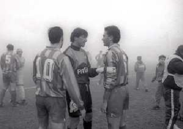 NEG-05-01-1992 CREMONA GARA SOSPESA PER NEBBIA AL 64 CREMONESE-INTER 0-0 NELLA FOTO WALTER ZENGA CON CORRADO VERDELLI E DARIO MARCOLIN AG ALDO LIVERANI SAS