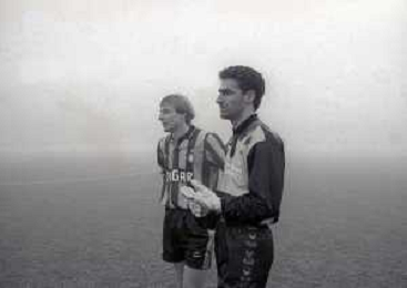 NEG-05-01-1992 CREMONA GARA SOSPESA PER NEBBIA AL 64 CREMONESE-INTER 0-0 NELLA FOTO RICCARDO FERRI E CORRADO VERDELLI AG ALDO LIVERANI SAS
