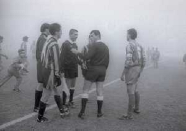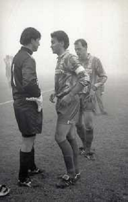 NEG-05-01-1992 CREMONA GARA SOSPESA PER NEBBIA AL 64 CREMONESE-INTER 0-0 NELLA FOTO L'ARBITRO ANGELO AMENDOLIA SOSPENDA LA PARTITA PER NEBBIA AG ALDO LIVERANI SAS