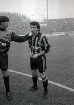 NEG-05-01-1992 CREMONA GARA SOSPESA PER NEBBIA AL 64 CREMONESE-INTER 0-0 NELLA FOTO MICHELANGELO RAMPULLA E JURGEN KLINSMANN AG ALDO LIVERANI SAS