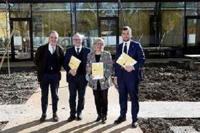 IMOLA 10 02 2026 CONFERENZA STAMPA ‘nuovi uffici del Nuovo Circondario Imolese, situati nei Padiglioni 10 e 12 del Parco della Conoscenza e dell’Innovazione dell’Osservanza’ NELLA FOTO Sergio Maccagnani - Direttore Generale del Nuovo Circondario Imolese, Giacomo Capuzzimati - Direttore Generale di CON.AMI, Francesca Marchetti - Vicepresidente del Nuovo Circondario Imolese e Sindaca di Castel San Pietro Terme, Marco Panieri - Sindaco di Imola e Presidente del Nuovo Circondario Imolese ©SANNA - AGENZIA ALDO LIVERANI SAS